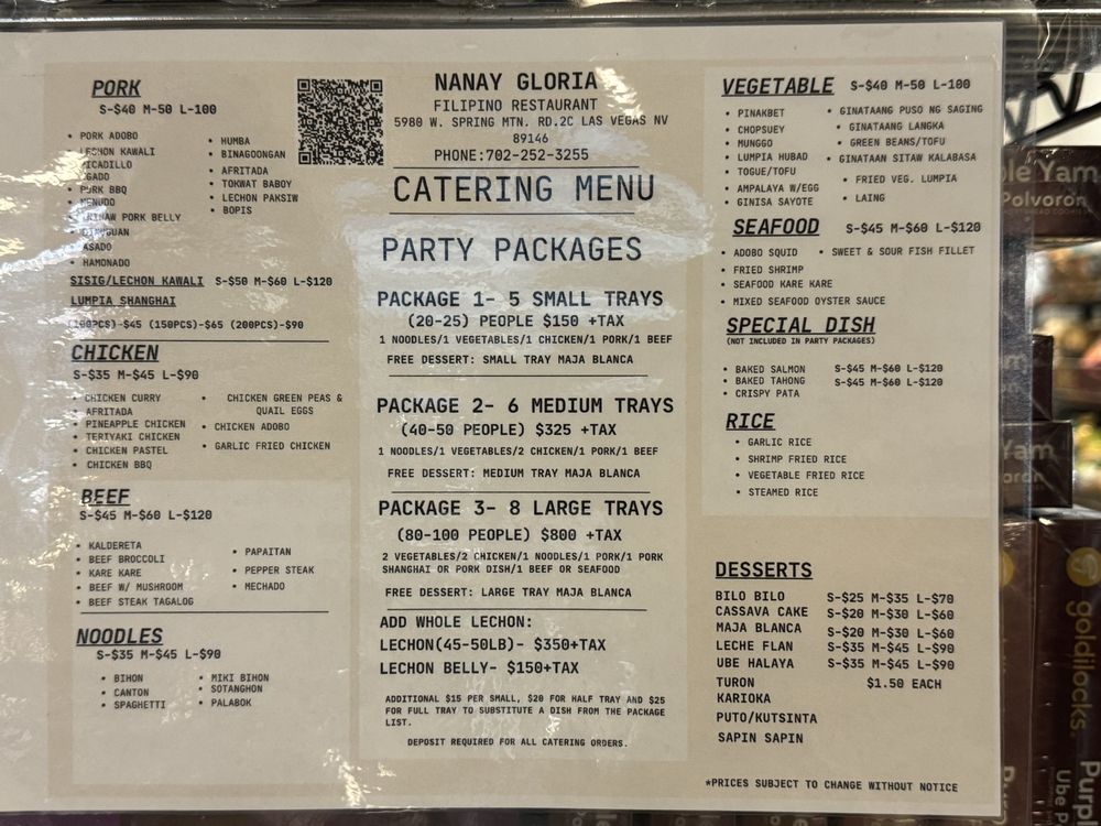 Introducing Nanay Gloria, a Filipino fast food buffet hotspot located in Las Vegas. Offering delivery, vegan options, and wheelchair accessibility, this casual yet classy restaurant is perfect for groups and families. Customers rave about the extensive menu featuring favorites like Kare Kare, Adobo, and Pancit. The buffet style allows for a customizable dining experience at a great value. The friendly staff and clean environment add to the welcoming atmosphere. With a variety of traditional dishes and dessert options, Nanay Gloria is a must-visit for anyone craving authentic Filipino cuisine. Don't miss out on the AYCE option, where you can feast on over 20 dishes for a budget-friendly price. Experience the taste of home-cooked Filipino meals at Nanay Gloria.